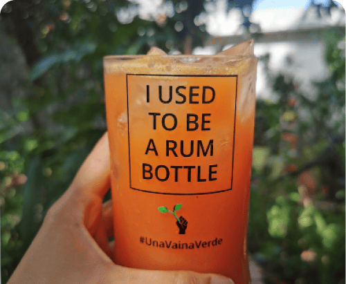 Vasos hechos de botellas de vidrio cortadas.